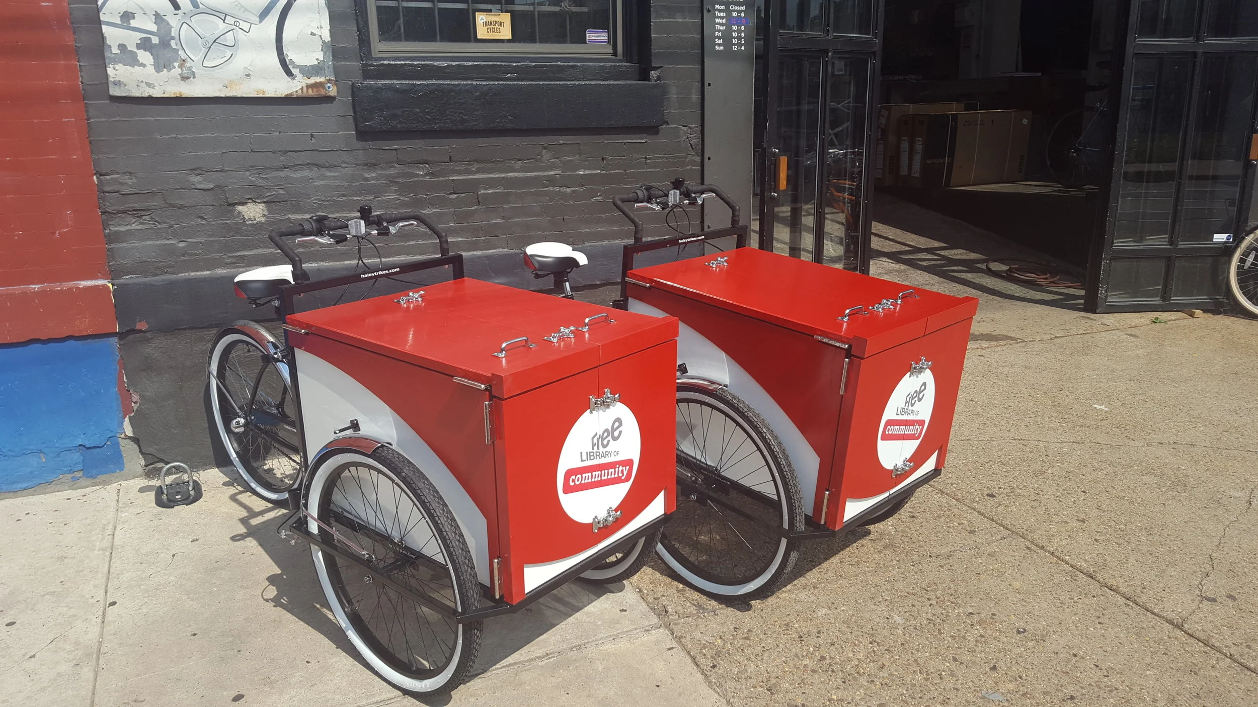 Haley Tricycles is dedicated to creating reasonably priced, durable, efficient and fun cargo tricycles. Our trikes are built for transporting hundreds of pounds of cargo around town, inside a sturdy, lidded, lockable, beautiful box. They are used for personal cargo transport, vending, last mile delivery, community outreach and more. Haleys are built in Philadelphia, PA, with easily serviceable standard bicycle components, all stainless and marine grade hardware, and durable finishes. Electric assist is available on all models.